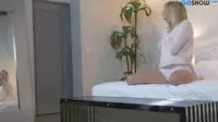 In the dimly lit room of seduction, two alluring blondes, dressed to entice, captivate their eager audience with an intimate show that leaves nothing to imagination but plenty for the senses to indulge in.The first blonde dons a tight lace bra, her large round tits threatening to burst out of it as she begins to tease and titillate the crowd.The white lingerie adds an extra level of temptation, making her even more alluring to onlookers.The other blonde wears a matching set, but instead of a bra, she opts for a crop top that barely covers her own pair of tits that seem almost too real to be true.As they begin their routine, it becomes apparent that these women are not just showcasing themselves but also exploring the art of striptease.With each carefully executed move, they expose more and more of their alluring bodies, making viewers squirm in anticipation for what is next.The first blonde removes her top to reveal perky tits with hard nipples that stand at attention, begging to be touched or licked, as the other blonde begins to remove her crop top, unveiling a pair of pierced nipples that make some in the crowd moan out loud.The panties of both blondes are made of a thin white fabric that leaves little to the imagination and allows eager voyeurs a glimpse into the hidden secrets that await between their legs.As the tease continues, both blondes touch themselves in tantalizing ways, leaving viewers gasping for breath as they watch these women bring themselves to the brink of orgasm, all while wearing sexy, alluring lingerie and teasing each other with the promise of a future sexual encounter.Their striptease becomes more bold and daring, crossing into the realm of sexual exploration and experimentation.The first blonde bends over in front of an onlooking man, lifting her skirt to reveal her plump ass as she winks and whispers sweet nothings that promise a wild ride for him later.Meanwhile, the other blonde kneels in front of the second woman, using her fingers to playfully stroke between her cunt lips, teasing the moisture within.As they explore their sensual connection with each other, the room is filled with a palpable erotic atmosphere that makes onlookers gasp in fascination and excitement, desperate to be part of this carnal encounter.In a climactic finale, both blondes find themselves at the edge of orgasm, writhing and moaning as they share a passionate embrace, their bodies tangled together in a sexual dance of ecstasy.The sight is breathtaking, leaving viewers breathless and craving more of what these blondes have to offer.