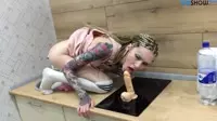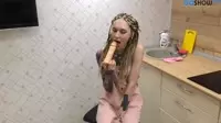 In the sultry Kitchen Counter Dildo Riding Session video, we are treated to an intimate and intense encounter between two eroticallydressed adults.The woman, with her long braids cascading down her back, is inked from head to toe, making for an arousing combination of elegance and kink.Her partner, tattooed just as exquisitely, dons socks and stockings, creating a visually tantalizing scene.As the two engage in their explicit acts on the kitchen counter, its clear that they are completely engaged with one another and enjoying each moment fully.The woman straddles her partner on the countertop, her legs wrapped tightly around his waist as she takes control of the situation.With a firm grasp on a shiny, glistening dildo, she guides herself onto it, riding up and down in a passionate frenzy.Their lips meet hungrily, their tongues intertwining and dancing as they explore one anothers mouths.The room is filled with heavy breathing and the sound of wet, slurping kisses, creating an atmosphere that is both intimate and overwhelmingly sensual.As she continues to ride him, the woman takes her other hand and starts fondling her partners cock through his underwear, squeezing firmly before sliding her hand down the shaft and stroking with increasing intensity.With one hand still working on the dildo, the man places his lips on her clit, gently sucking while inserting fingers inside of her pussy.She groans loudly, a mix of both pleasure and frustration at the sensation as her body tingles with desire for more.Her partner pulls away just long enough to return to his kisses, but their lust only grows stronger.The couple transitions from missionary to doggy style, her ass high in the air while he spreads her cheeks wide and drives himself deep inside.He grabs the dildo and slides it back into her now wet cunt as her partner continues to plunge his dick into her.They both moan loudly, their bodies slick with sweat and desire as they push each other closer to climax.As her orgasm approaches, the woman increases the speed of her movements, gripping the dildo tighter.Her partner follows suit, fucking her harder and faster.Their moans echo throughout the room, intensifying the sexual tension in the air.When their release is finally upon them, the couples bodies convulse with pleasure as they both cum simultaneously, each filling the other with a warm, thick liquid that drenches their bodies.The womans braids fall around her face as she pants and catches her breath while still straddling her lover on the kitchen counter, their intertwined hands and legs creating an image of intimacy and desire rarely seen in the world outside of adult entertainment.This passionate encounter between these two sexuallycharged individuals is truly a spectacle to behold, showcasing the beauty and intensity of human sexuality in every thrust and moan.The Kitchen Counter Dildo Riding Session video is sure to leave viewers captivated and craving more as they explore the realms of adult pleasure within the comforts of their own home.